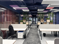 Концепция БЦ — создание комфортных условий для работы и жизни. Развитая инфраструктура включает в себя офисные помещения разной площади и планировки, фитнес-центр, медицинский центр, зоны отдыха, заведения общепита. Для создания комфортного микроклимата в офисах в БЦ предусмотрена приточно-вытяжная вентиляция с пониженным уровнем шума, 2-трубная система отопления и центрального кондиционирования. Имеется пожарная сигнализация, система пожаротушения и оповещения. Предоставляемая электрическая мощность составляет 100 Вт на 1 м2. Для остекление использовано стекло Stopsol Phoenix от Crystalvision с солнцезащитным покрытием и теплосберегающими функциями. Наземный паркинг рассчитан на 627 машино-мест.